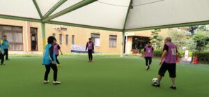 講義の後は、いよいよ実技です。ウォーミングアップから始まり、基本動作の練習、そしてミニゲームへと進みました。誰もが笑顔でボールを追いかけ、楽しんでいる様子が印象的でした。
